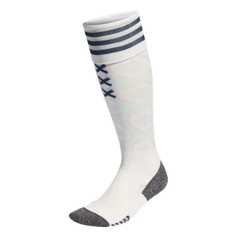 Gevoerde sokken uit het uittenue van Ajax Amsterdam, gemaakt met gerecycled materiaal.