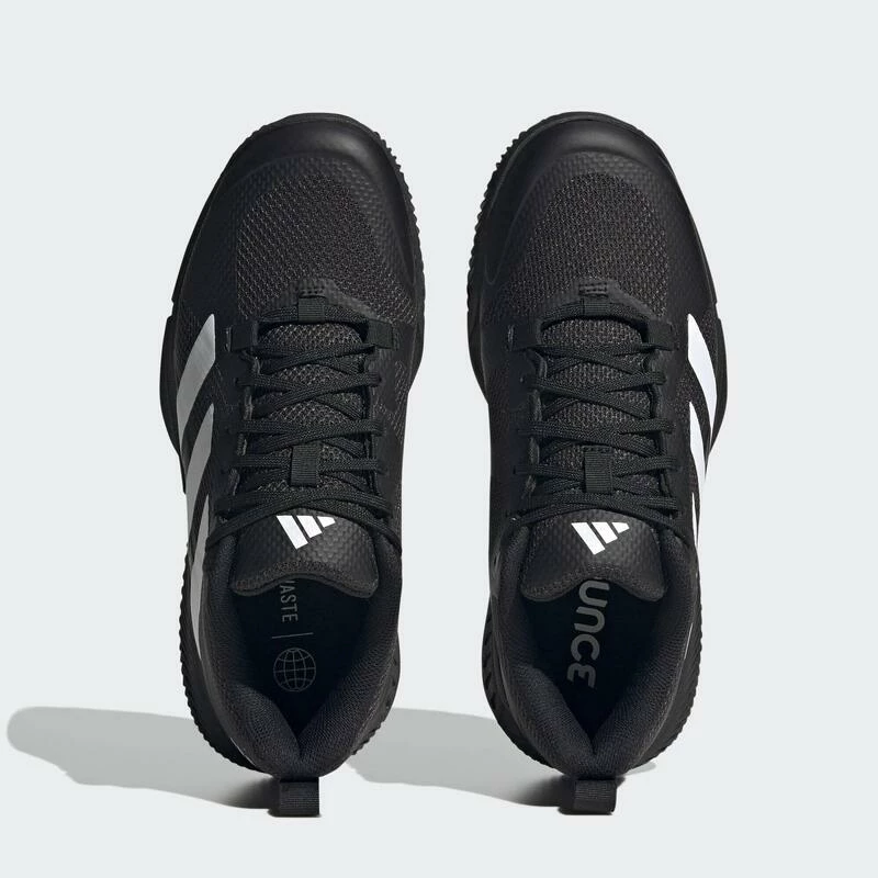 Welke zaalsport je ook beoefent, de Court Team Bounce 2.0 schoenen van adidas helpen je uitstekende prestaties neer te zetten. De Bounce-middenzool over de hele lengte maakt sprintjes soepeler en dempt ook de zwaarste landingen. Het bovenwerk van dubbellaags mesh, dat nauw rond je voet sluit voor betrouwbare verankering, is makkelijk aan en uit te trekken en biedt versterking voor extra stabiliteit tijdens je abrupte zijwaartse bewegingen. De rubberen loopzool biedt grip op harde, vlakke ondergronden voor de responsiviteit die je nodig hebt om te schitteren.