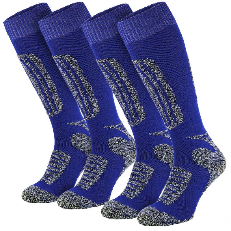Deze mooie functionele sokken in lange vorm met comfort tailleband zijn door hun padding ideaal voor skischoenen. De extra padding op het scheenbeen, de kuit, de enkel en de voet voorkomt drukpunten van de laarzen. Of het nu voor skiën, snowboarden, vrije tijd, als werksokken of voor andere sporten is, ze bieden met hun functionele zones veel comfort en een goed voetklimaat. De hoogwaardige materiaalmix met wolgehalte is zeer aangenaam op de huid en houdt u warm in de winter. De kniekousen zijn verkrijgbaar in verschillende maten en kleuren. De comfortabele wellness-zool van badstof rondt deze geweldige eigenschappen af.