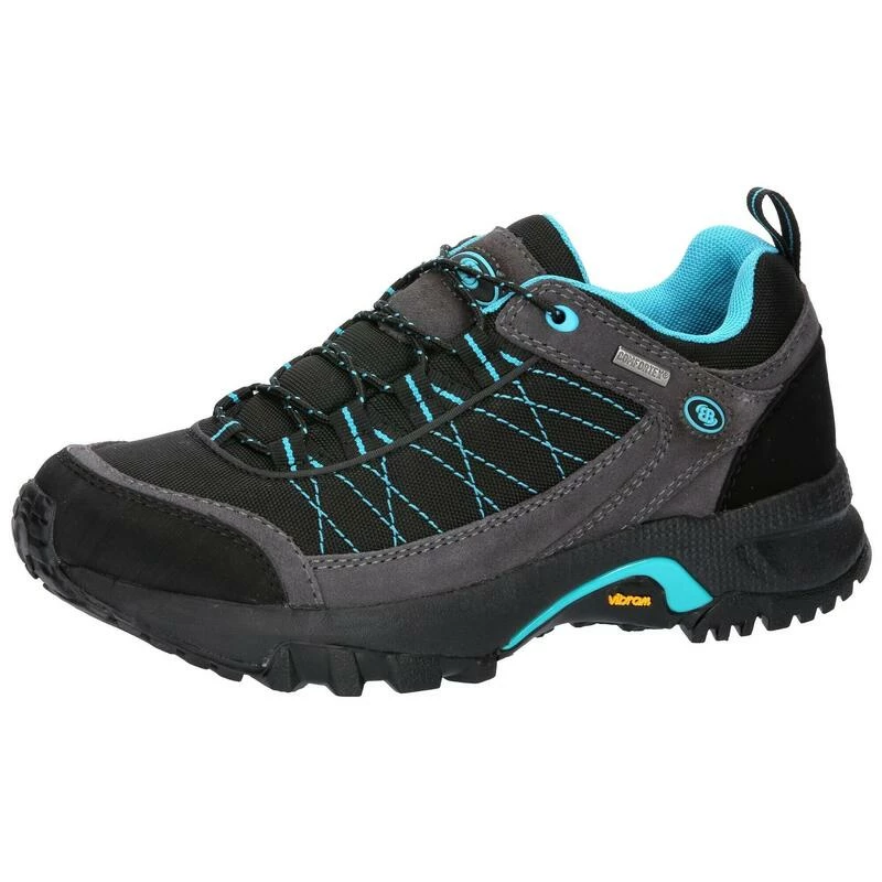 De Mount Egmont outdoorschoen van Brütting; bovenwerk van een mix van nylon suède bies; sluiting: vetersluiting; waterdicht en ademend Comfortex klimaatmembraan; voering van textiel; verwisselbare Ortholite textielen binnenzool; stabiele en antislip Vibram buitenzool.