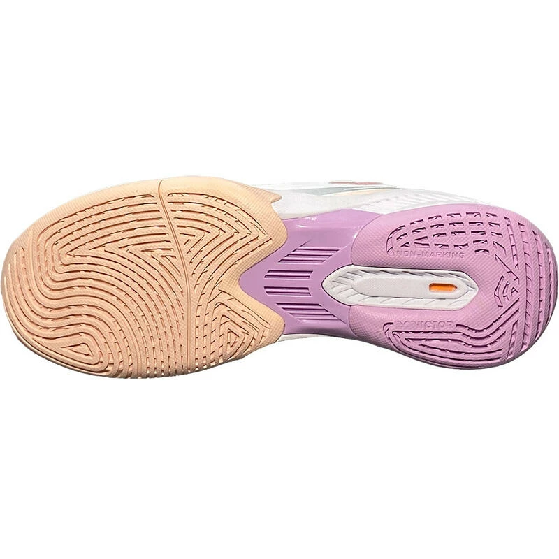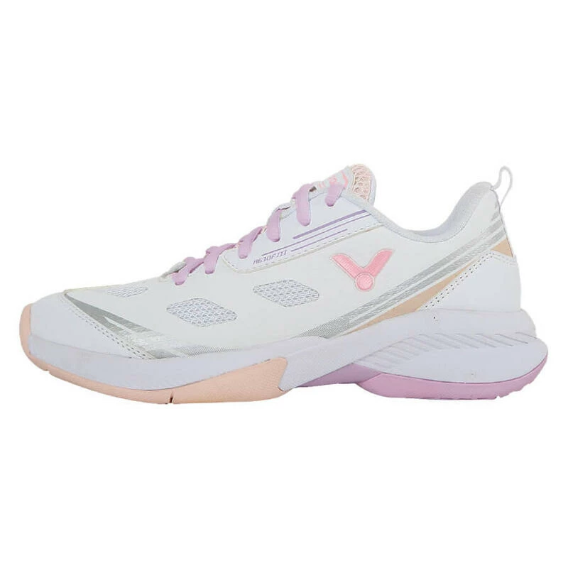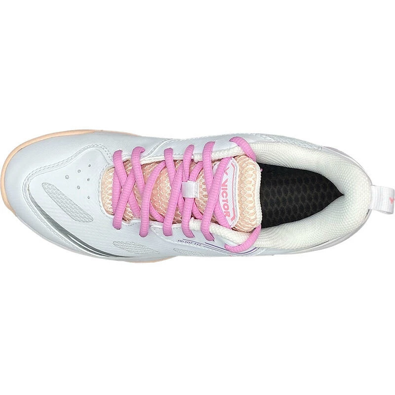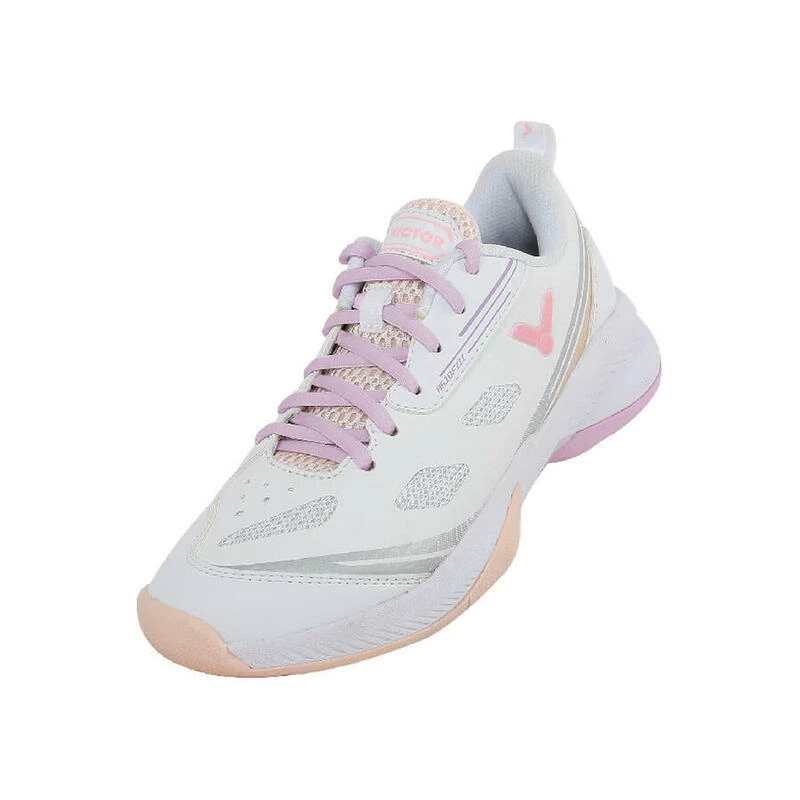 De Victor SH-A 610 III White/Pink is van zeer hoge kwaliteit en is de opvolger van de Victor A610 II. De schokabsorberende kern, het ‘Energymax 3.0 systeem’, en de veerkrachtige EVA-laagâ„¢ ‘Resilient’, zorgen voor een aangenaam zachte zool.