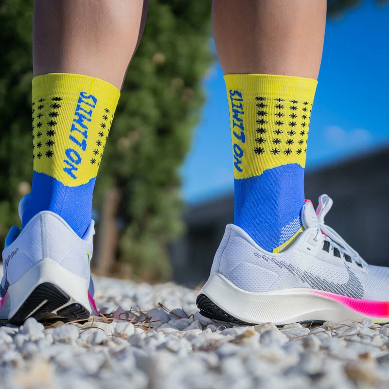 SPECIFIEKE SOKKEN VOOR HARDLOOP – COMPRESSIEF. Ontworpen door hardlopers voor hardlopers, die zijn getest in ultraafstandsraces en maximaal comfort en ademend vermogen garanderen. Hoogte 23cm. Ademend gaas. Antislip badstofzool voor hardlopen en trailrunning. Vervaardigd in 1 draad = frisser en fijner