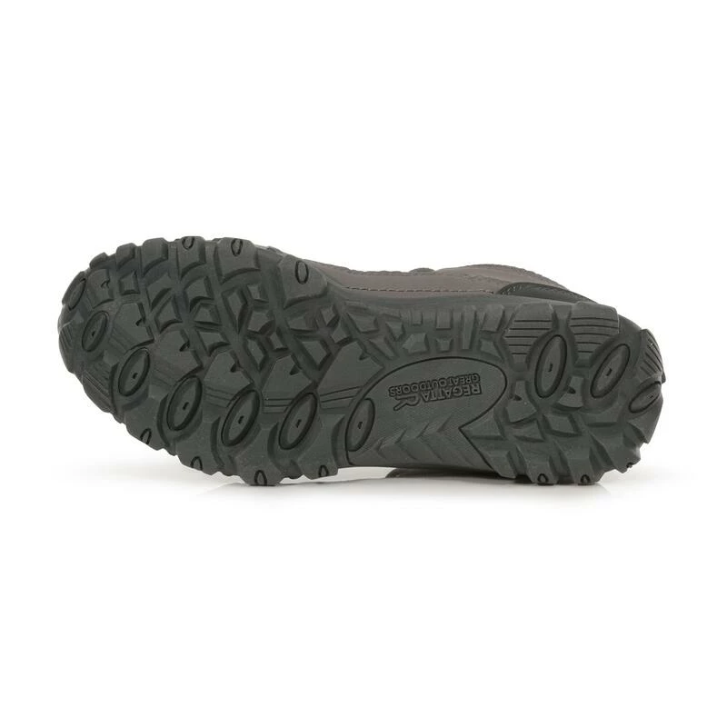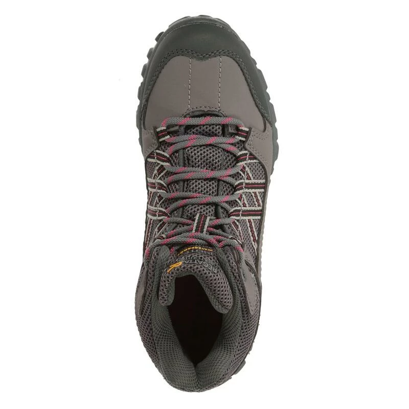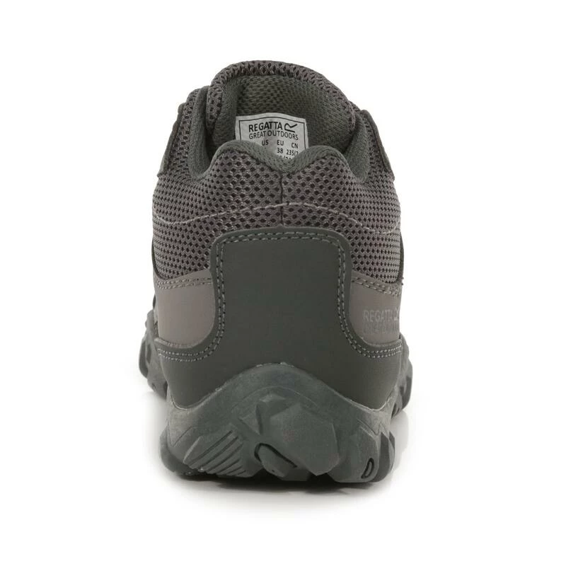 De Lady Edgepoint middelgrote wandelschoen van Regatta voor dames is waterdicht en ademend dankzij de waterafstotende Hydropel-technologie en een waterdicht/ademend Isotex-membraan met getapete naden. De inzetstukken van rubber en de schokabsorberende EVA-kussentjes beschermen de voeten bij elke stap. Weegt 342 gram.