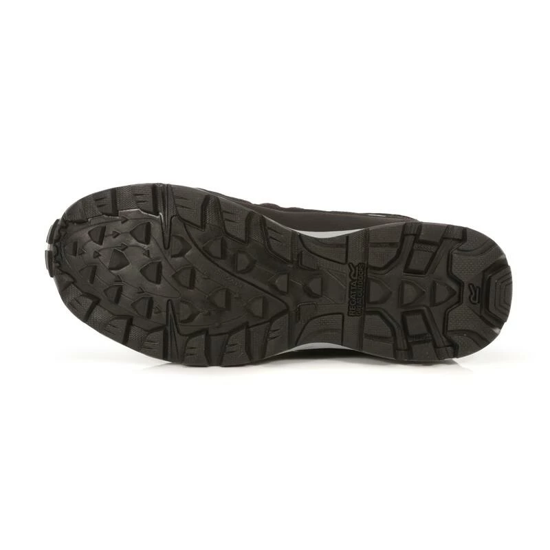 De Lady Samaris Lite Low Walking Shoe van Regatta is super lichtgewicht en biedt een uitzonderlijk ademend vermogen met een waterbestendige Isotex-membraanvoering en gedempte EVA-middenzool. Lichtgewicht tech-mesh bovenmateriaal met waterafstotende Hydropel-technologie houdt de voeten droog van binnen en van buiten. De eenvoudige aan/uit-sokpasvorm zorgt voor compact comfort en laat de voeten ademen onder warme omstandigheden. De stevige rubberen buitenzool biedt grip op losse paden en modderige oevers. Geschikt voor veganisten. Gewicht: 299 gram.