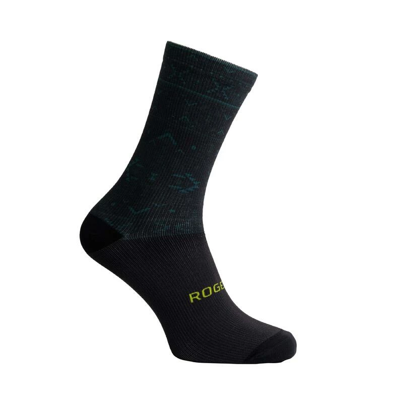 De Aztec sokken zijn onderdeel van de Rogelli Aztec set en passen perfect bij het Rogelli Aztec fietsshirt. De Aztec sokken zijn bedrukt met behulp van een innovatieve printtechniek, waardoor de print mooi uitkomt en jij gesoigneerd de weg op kan. De wielersokken zijn gemaakt van een elastische Lycra stof en hebben een anatomische pasvorm. De versterkte band rond de wreef biedt extra ondersteuning. Deze versterkende weeftechniek is ook toegepast op de hiel en de tenen. De naadloze tenen voorkomen irritatie.