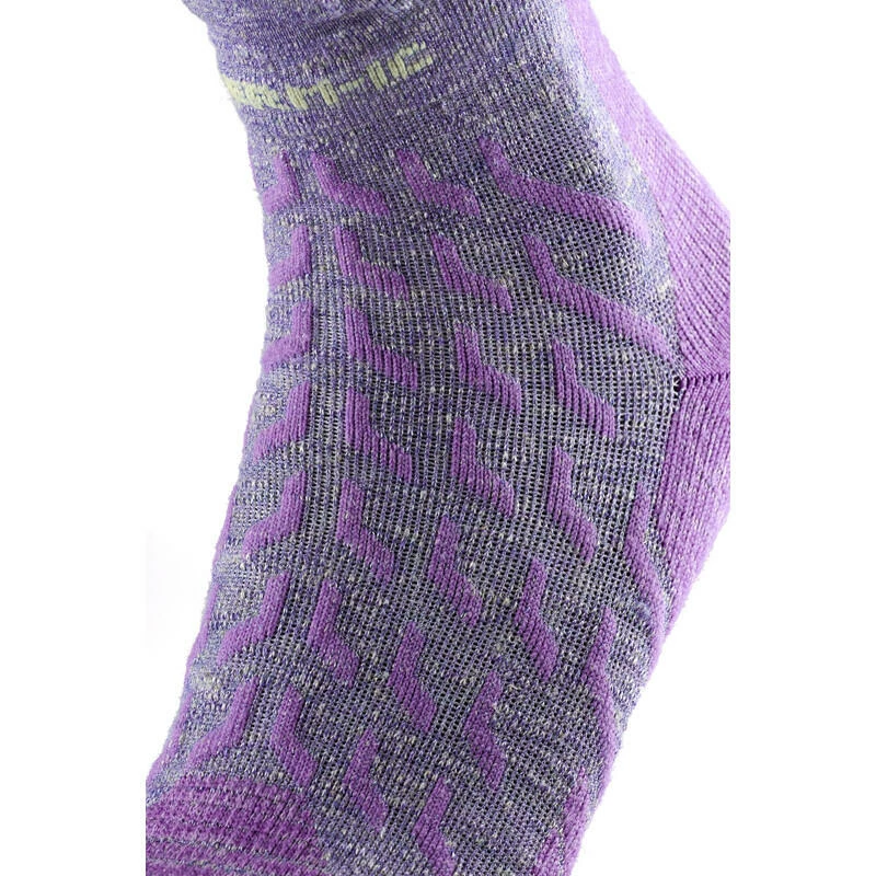 Deze sokken combineren linnen en high-tech absorberende garens met een innovatieve structuur, om perfect vochtbeheer, zachtheid en comfort te bieden. Dankzij het gladde oppervlak is linnen ademend, scheurvast, antistatisch en geurloos. Een ideaal materiaal om te dragen bij warm weer. Deze sokken bevatten ook het biologische garen Pure-IC dat ongelooflijk licht, rekbaar is en zeer snel droogt. Innovatieve Moisture-Vent-technologie zorgt voor ventilatie en ondersteuning. De technologische lay-out zorgt voor een zeer ademende omgeving zonder de balans te beïnvloeden. Bij elke stap wordt vochtige lucht vanuit de voetboog naar de zijkanten gepompt, zodat vocht kan ontsnappen. Verbonden met vochtafvoerende technologie, leidt het Climate Channel System warme, vochtige lucht uit de Trekkingschoen. Kleinere, meer verspreide pads, Pads laten vocht ontsnappen om de temperatuur te regelen.
