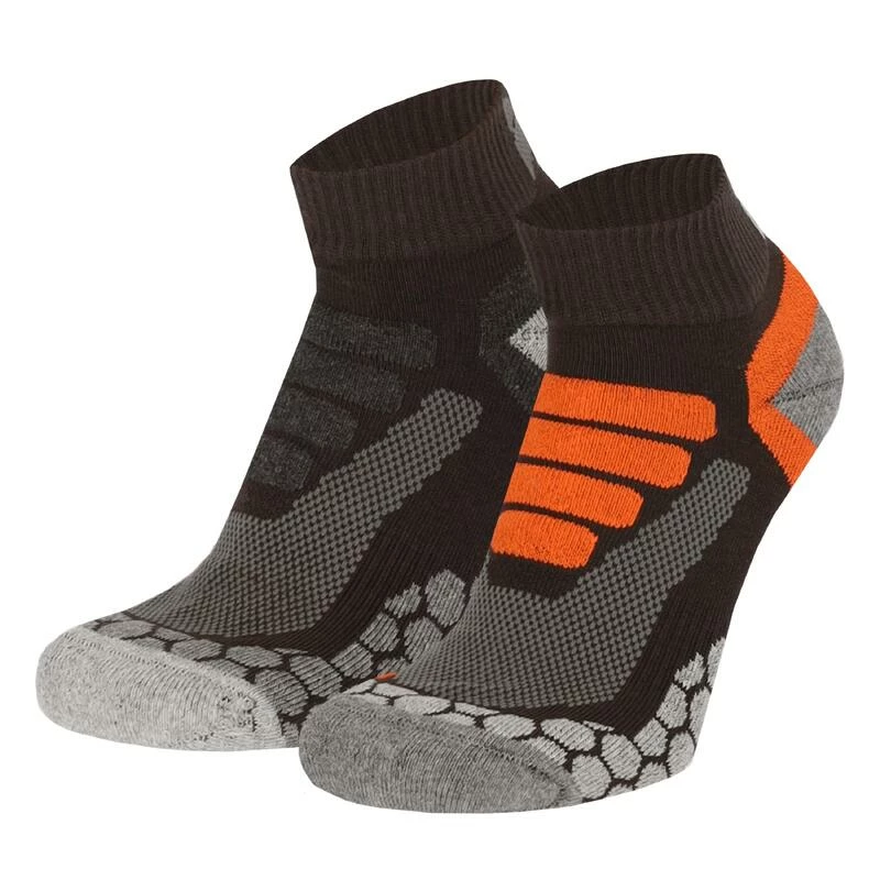 Cross your limits met deze 2-pack lage wandelsokken van Xtreme sockswear. Jouw voeten voelen tijdens iedere wandeling comfortabel, koel en droog dankzij de ventilerende Coolmax werking van de sokken. Dankzij de optimale drukverdeling bieden de sokken de juiste ondersteuning. Het materiaal is sneldrogend en ademend en zijn daarom geschikt om te dragen in alle type weersomstandigheden. Het anatomisch gevormde voetbed van de sok en de badstof teen en hak, beschermen de voeten tegen blaren en verminderen de drukpunten. Ook de niet knellende boord, het ondersteunende rib detail op de wreef en de perfecte naadloze pasvorm dragen bij aan een optimaal draagcomfort.